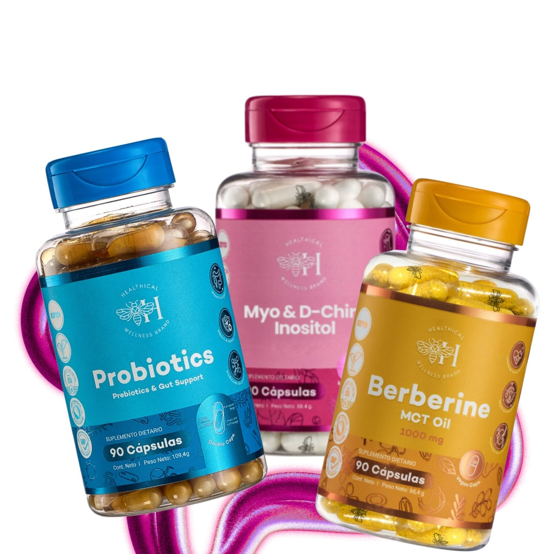 Probióticos, Prebióticos y Apoyo Intestinal (Cúrcuma, Linaza, MCT y Vitamina E)