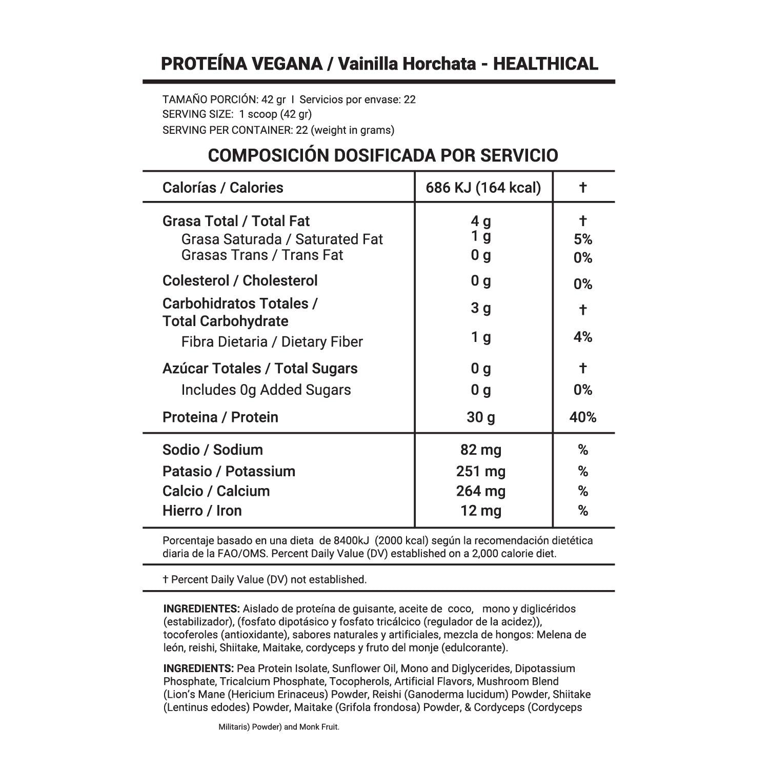 Proteína Vegana ISOLATE - Sabor Vainilla - Horchata